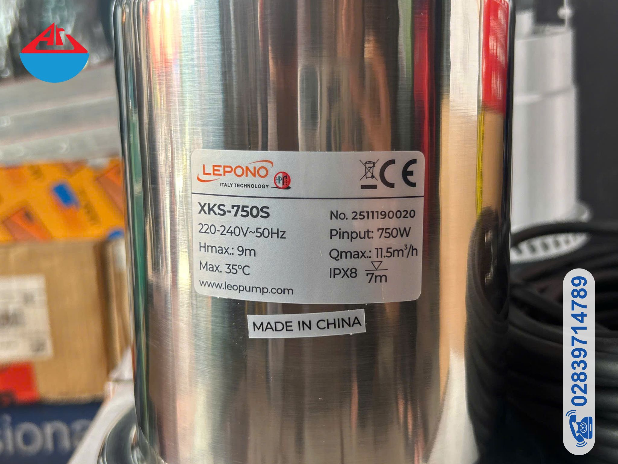 Máy bơm chìm nước thải Inox Lepono XKS-750S ( có phao ) là dòng sản phẩm được ứng dụng nhiều trong các công trình xử lý nước thải, thoát nước lưu lượng lớn, xử lý nước thải tại các khu công nghiệp, khu đô thị, công trình xây dựng… Được sử dụng nguồn điện 220V với công suất 1HP, bơm chìm Lepono có thể tạo ra cột áp có độ cao lên đến 9m. Lưu lượng tối đa 200 lít/phút và có đường kính hút xả 42mm. Bơm nước thải XKS-750S được sản xuất bởi hãng bơm Lepono có xuất xứ từ Trung Quốc. Quý khách hàng sẽ được bảo hành 12 tháng