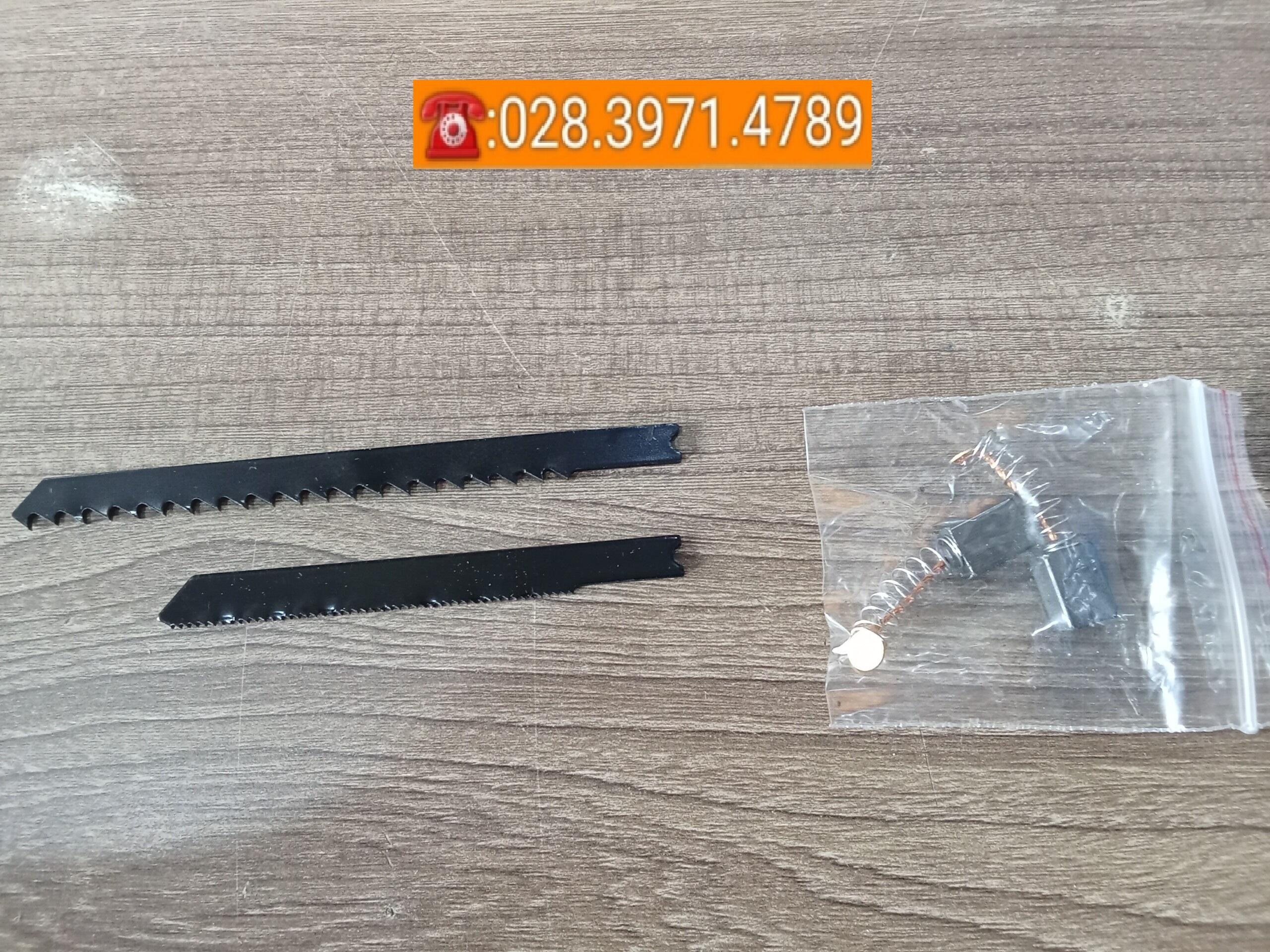 + Phụ kiện đi kèm: 2 lưỡi cưa lọng (cưa gỗ và cưa sắt), 1 cặp chổi than