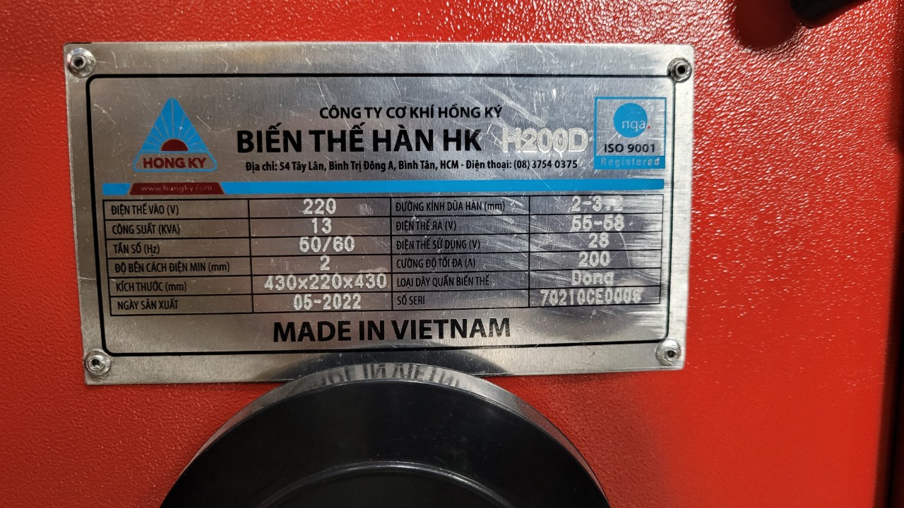 Máy biến thế hàn HỒNG KÝ H200D là dòng máy hàn hồ quang 220V.