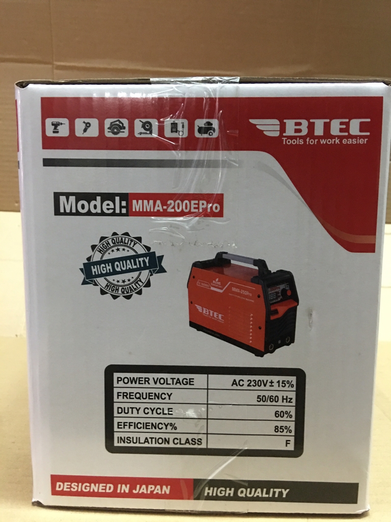 -Được sản xuất trên dây chuyền công nghệ hiện đại của Nhật Bản, mang thương hiệu BTEC, MMA-200E Pro là dòng máy hàn chuyên dụng hàn tốt, liên tục que hàn 2.5mm và hàn thêm các loại que hàn 3.2mm.