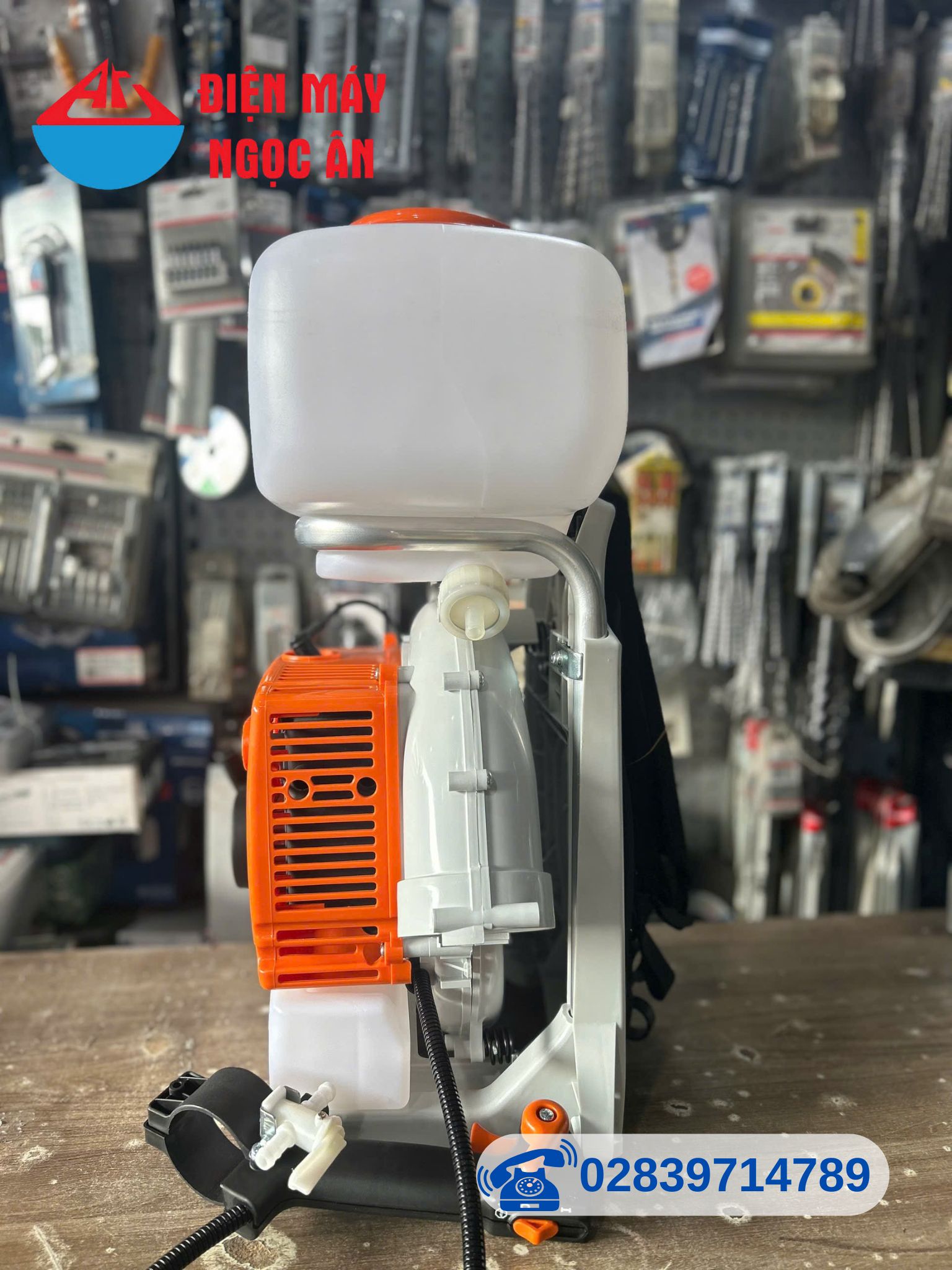 Phụ kiện:01 Máy chính, 01 Vòi phun + 1 kẹp ống + 2 cổ dê + 2 ốc, 01 Bộ định hướng hạt phun, 01 Tấm đệm lưng, 01 Tuornervis dẹp, 01 Khóa mở Bougie